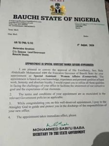 The SSG said that Mrs Ibrahim is to assist the Governor on matters of single ladies based on her knowledge, experience and personal qualities.