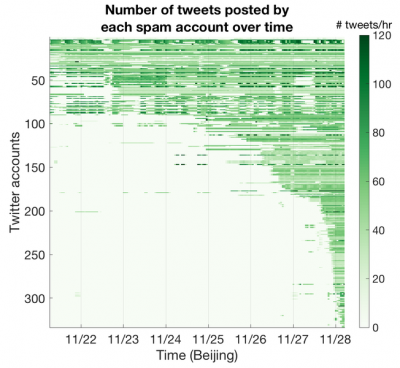 In an apparent state-directed attempt to suppress footage of wide-spread demonstrations, Twitter has been flooded with nuisance posts designed to blur news of the coronavirus lockdown protests in China.